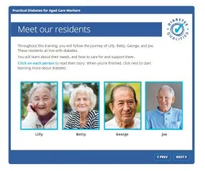 Diabetes is the fastest growing chronic condition in Australia, and around 1 in 4 people living in residential aged care facilities have diabetes. For older people, helping them maintain the best quality of life is one of the main principles of diabetes management and aged care workers play a pivotal role in supporting the person living with diabetes. Effective self–care results in better health related outcomes and quality of life for the person living with diabetes. This training will provide aged care support workers with a basic understanding of diabetes, and how it relates to their work and the situations that arise from their role.